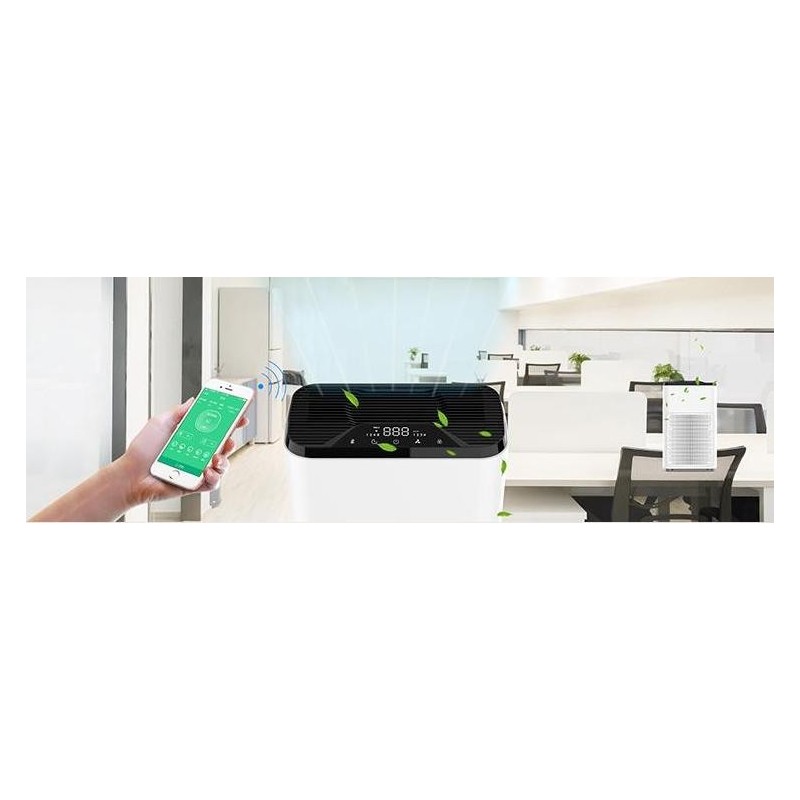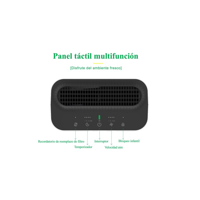2- Filtro absoluto HEPA H13 con 99,95% eficiencia contra virus y bacterias + Filtro de carbón activo que elimina olores, formaldehido, VOC, etc.